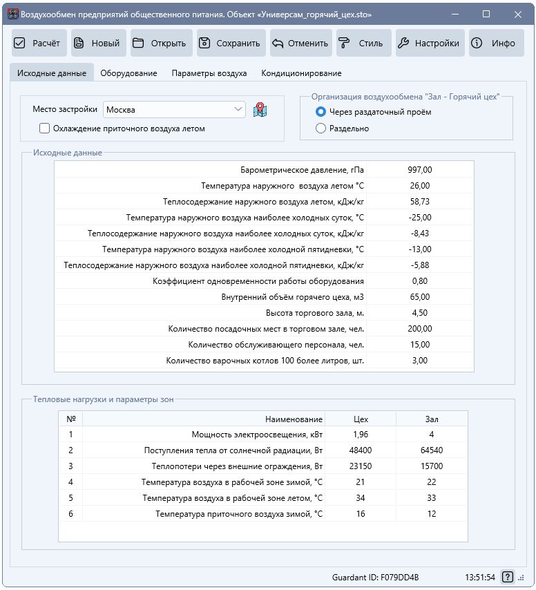 После задания имени откроется Главная форма программы, в которой выполняются все основные действия по вводу исходных данных и расчёту воздухообмена.